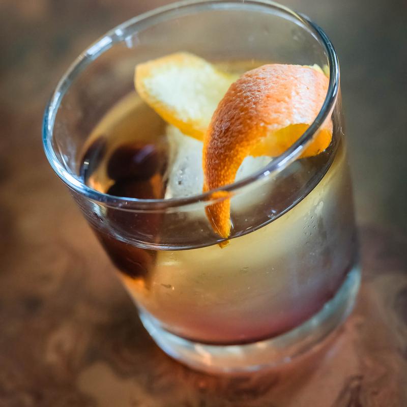 Woodford bourbon, bitters, Luxardo cherry, orange peel.